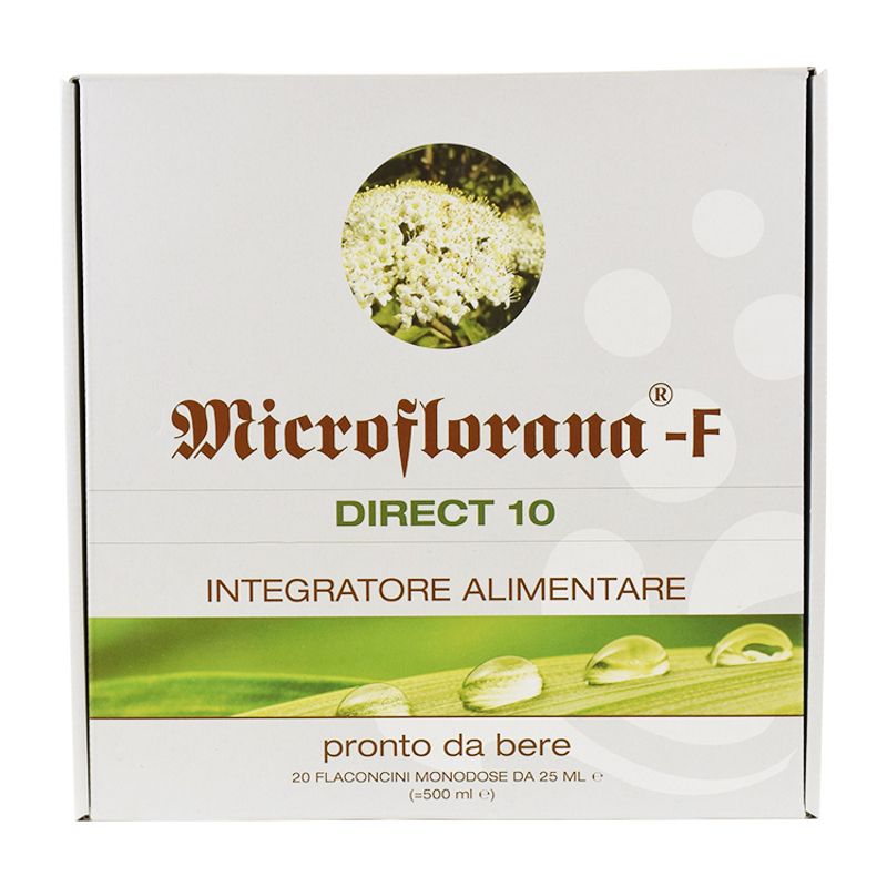 Microflorana F Direct-10 Integratore alimentare utile in caso di insufficienza intestinale batterica, disturbi della flora intestinale, meteorismo e flatulenza, disturbi della motilità intestinale, sindrome del colon irritabile, diarrea funzionale, parassitosi.